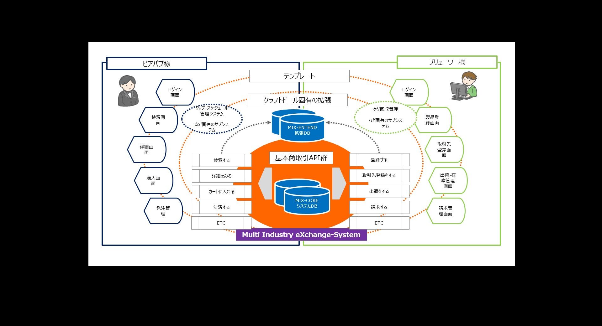 | 概要 | オリジナルの商取引ライブラリ(MIX)をベースにしてクラフトビール専門の取引システムを短期で構築、サービスイン | ||||