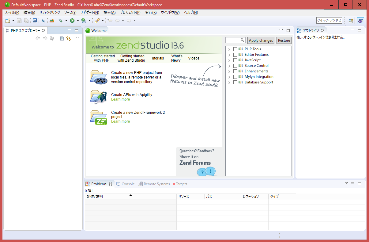 | Zend Studio 13 は、購入いただくと使用期限なくご利用いただけます。製品の購入から60日間インストール/設定/使用方法に関してと問合せサポートを提供いたします。 ご購入いただきましたら、別途ご案内いたしますユーザー登録ページにてユーザー登録をお願いいたします。 *ライセンスに使用期限がないということは、動作を保証することではありません。ご利用の環境や開発対象の変換に応じて、使用できなくなる場合があります。 *製品購入から60日が経過した後は、PHPプロフェッショナルサポートをご利用ください。 |