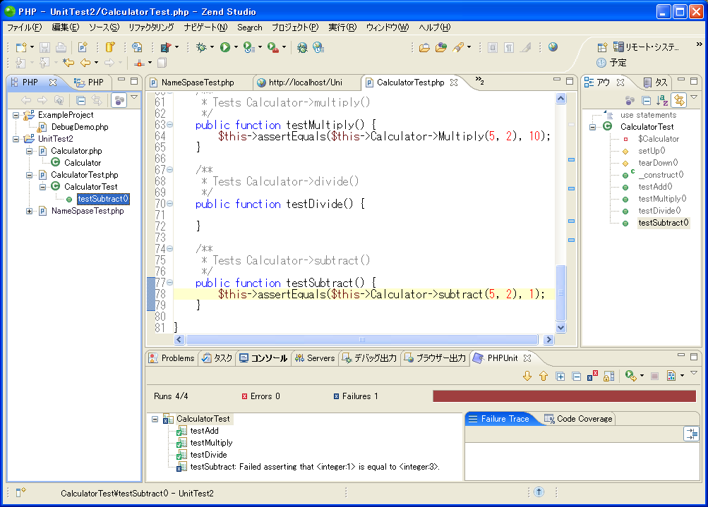PHPUnitで検査を実行したソースコードを行単位で記録し、PHPUnitが網羅しているかどうかをビジュアルまたはXMLファイルで確認できます。クォリティを重視する開発プロジェクトでは、必須の機能となっています。