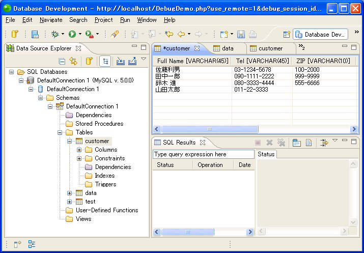 データベースと直接接続して、スキーマ構造の参照および操作が可能です。さらに格納されているデータの参照も可能です。また、SQLクエリの実行制御もサポートしており、あらゆるデータベース処理が可能です。データベースサーバへの接続は、JDBCドライバで行います。