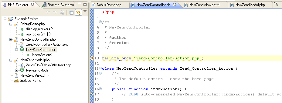 Zend Studio 8 日本語版は、各種のコード自動生成機能を搭載しています。新しいClass/Interfaceを作成する場合、ウィザードのサポートによって、容易に雛型となるPHPコードを生成します。また、Zend Frameworkに対応したPHPコードもウィザードのサポートによって、容易にプロジェクトの追加することができます。