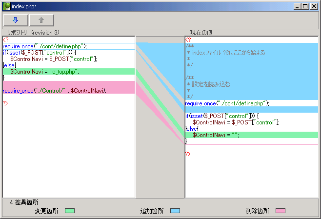 ソース管理システム(Subversion, CVS)との連係によってソースファイルのバージョンを管理が可能です。旧バージョンコードとの比較もグラフィカルに表示します。複数の開発者がソースコードを共有する上で、効率よく安全に作業をすることができ、チーム開発の効率を向上させます。